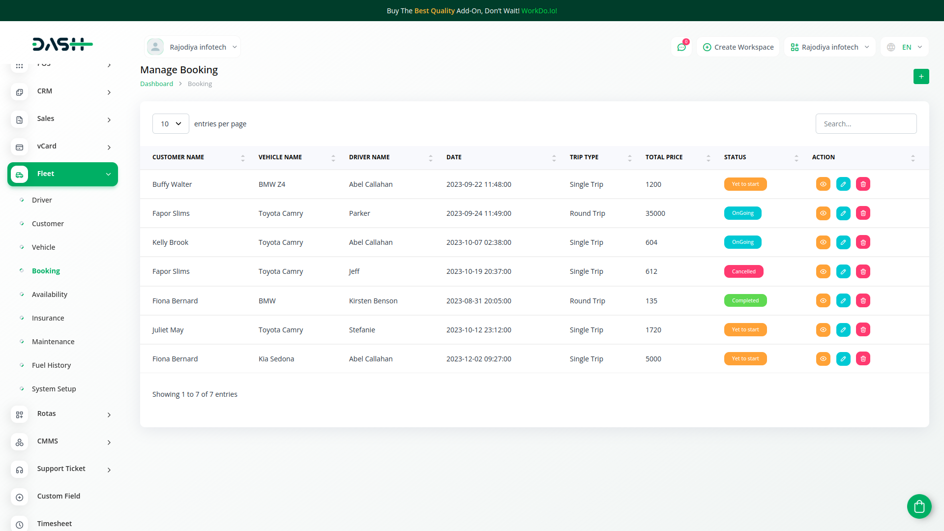Fleet gives users deep insight into their maintenance needs with detailed Vehicle Bookings, Vehicles,Maintenance,insurance , dashboards