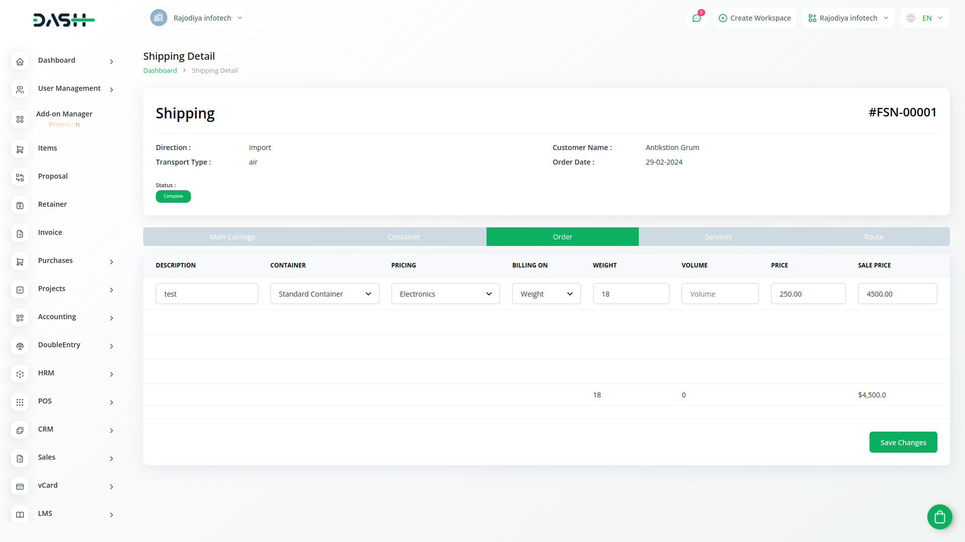 Dash SaaS Freight Management Integration revolutionizes the backend management of logistics operations. Once customers complete their booking process on the front end, you gain immediate access to a suite of powerful tools for efficient freight management. From setting competitive prices to configuring containers and selecting tailored services, the platform empowers you to fine-tune every aspect of your logistics operations according to your unique requirements and preferences.